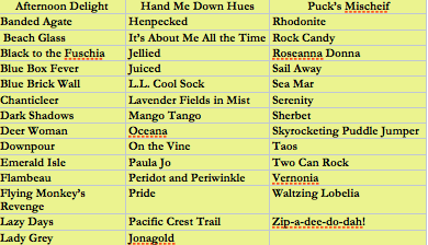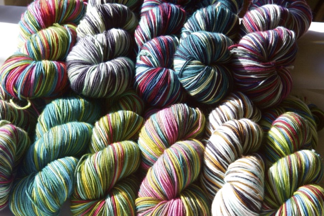 You know… we’ve not had a color way related contest in quite awhile. Wouldn’t it be fun to have one with our new Holiday hues? How about this? Since I’ve already come up with them and named them your job is to write a description based on the picture of the colorway and it’s name. You can write a description for just the one that speaks to you the most or, if you are so inspired, you can write a description for the whole lot if you like. For each description we choose, the person who wrote it, will receive that colorway in a skein of Socks that Rock as their prize. Please leave all of your descriptions here in the comments section of this blog post so we all can read them. (This is going to be fun!!) In the name of fairness and so everyone has a chance at winning, each person can only win once even if you submit more than one description.
