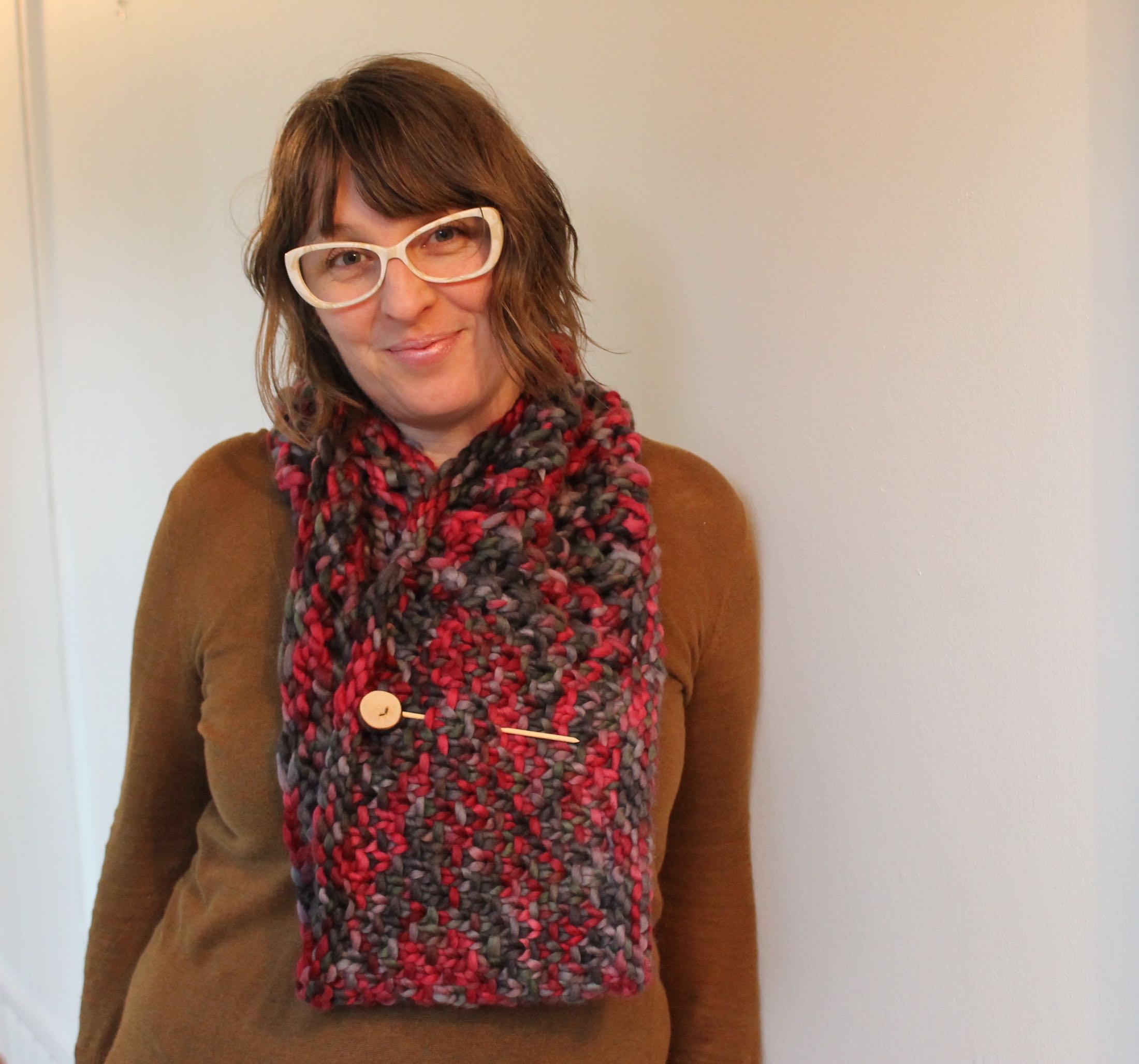 Seriously, when Shannon told me that she named this cowl Ditty I almost choked on my tea. Ditty is a stunning and cozy cowl knit out of our super soft and very bulky Sookie, so the chances of it being a little Ditty is pretty funny. A Ditty it is though. I’m having a pretty heavy duty love affair with a few of our new yarns right now and Sookie is at the very top of the list. It is sinfully soft and lofty. I just want to dump a few bales of it on the floor of the dye barn, curl up in it and take a very long cat nap. Once you start knitting with Sookie you are not going to be able to stop. Really, I kid you not, one skein is not going to be enough. You will not be able to knit just one! Lucky for us that Ditty is a quick knit so you don’t have to knit just one.